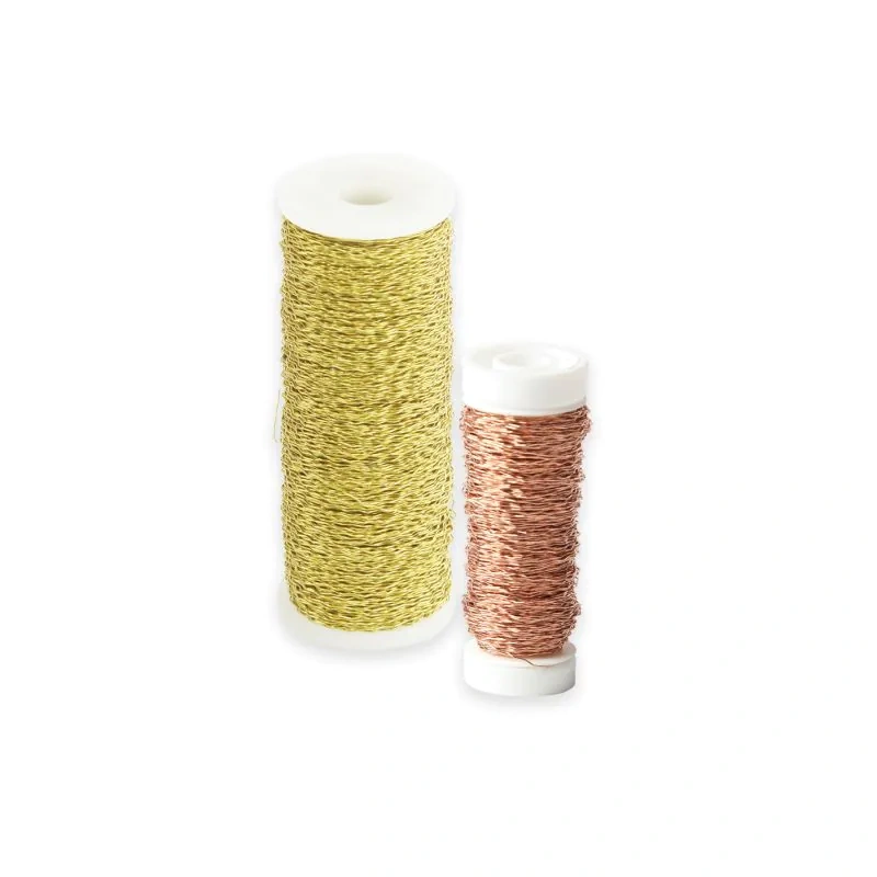 Metallic finish 0.3mm coloured crinkled steel wire on a reel.
