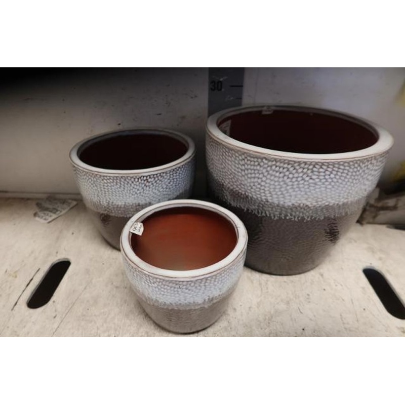 Cer Pot Diamond White Brown (Set of 3)