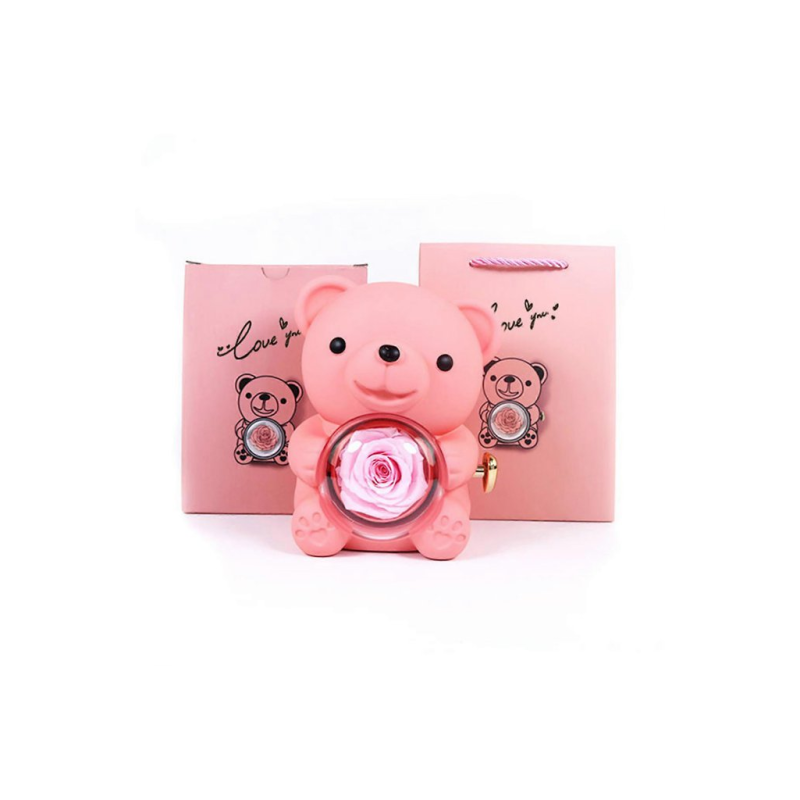 HUG BEAR W/PRESERVED ROSE & GIFT SP PINK